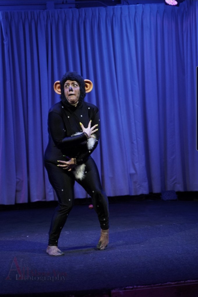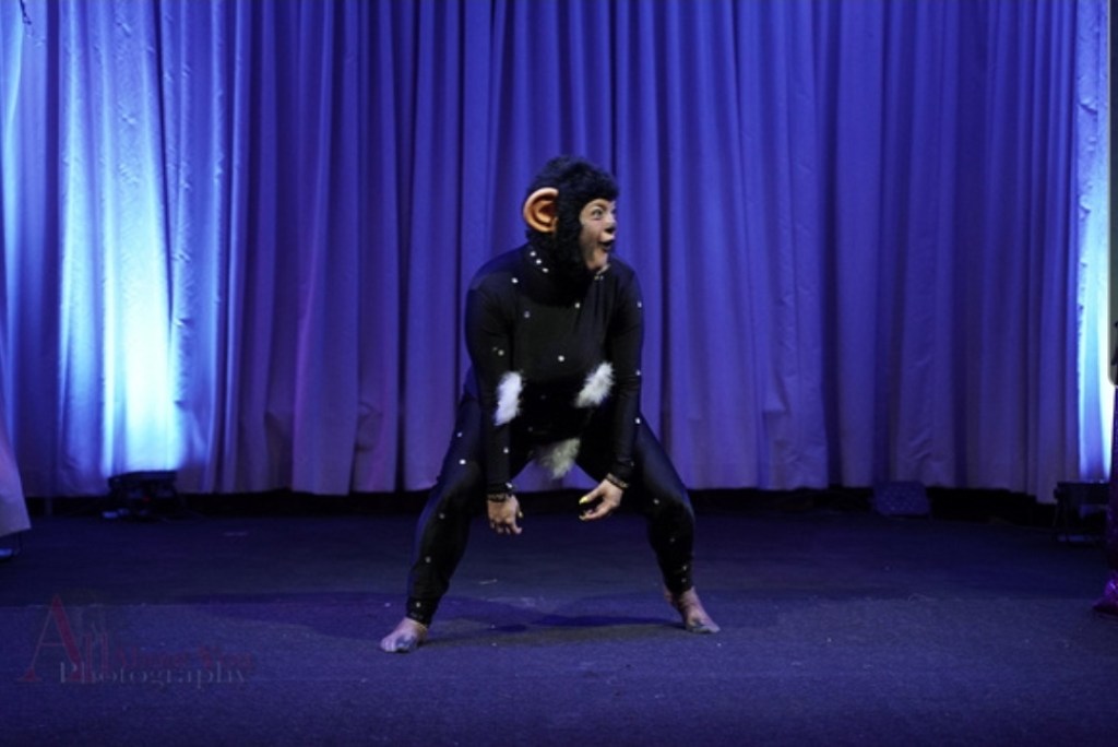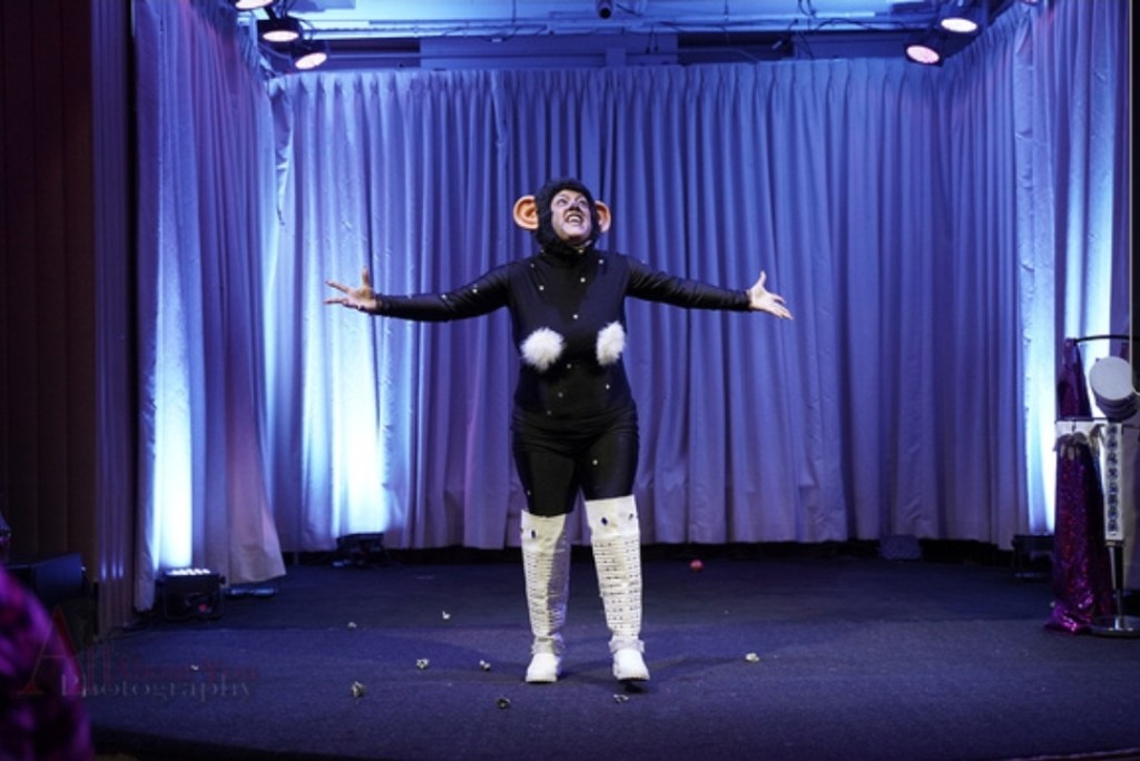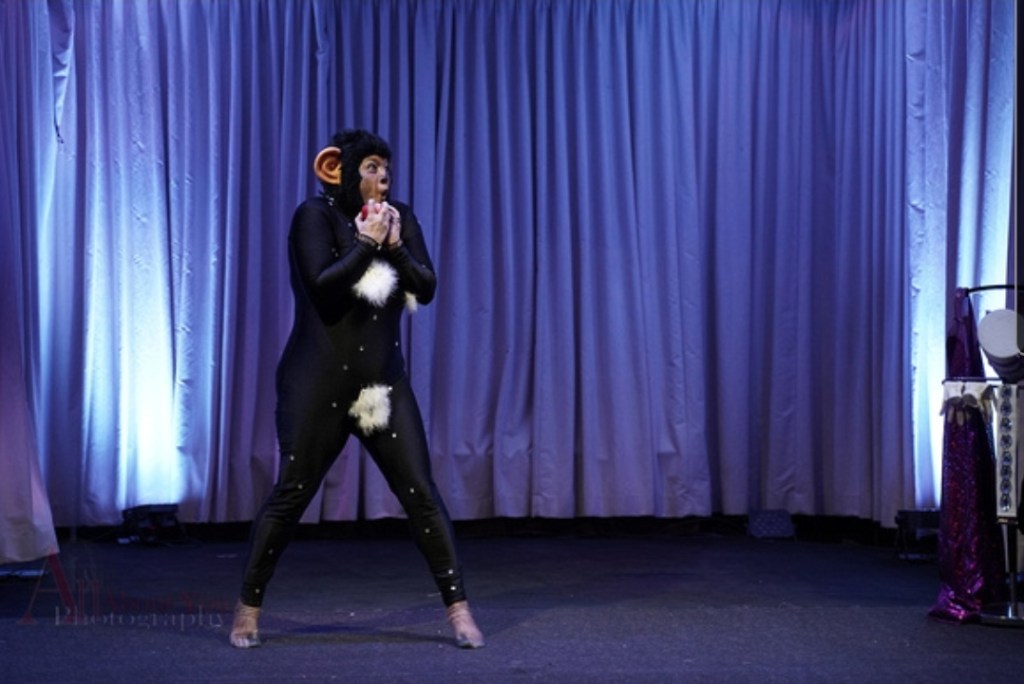 Moja’s signature act is a uniquely designed burlesque performance that tells the story of Mojo Jojo (Powerpuff Girls) and his rise from a simple monkey names Jojo to the Evil Genius Villian who strives to take over the world and defeat the Powerpuff Girls.