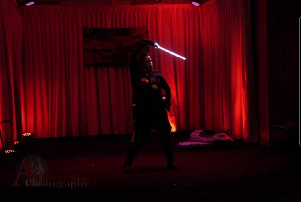 Previously performed on April 31st and May 1st, 2021, Moja brings the character Moff Gideon to stage with attitude and a very colorful set of balls… poi balls that is. Watch as Moja lights up the stage with her Dark Saber and introduces her “Raver” side to the screaming crowd.